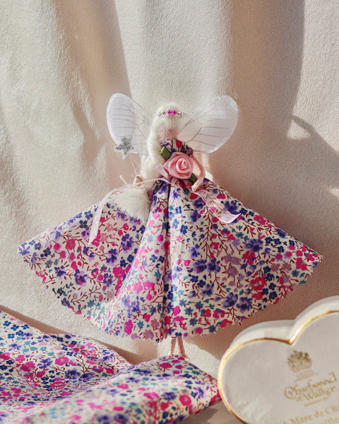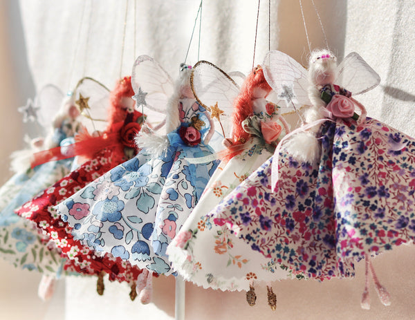 Every Florialice Fairy is lovingly handmade using fine silk, Liberty cotton lawn, netting and delicate embellishments. Each one is ever so slightly unique, giving her her own personality and charm.