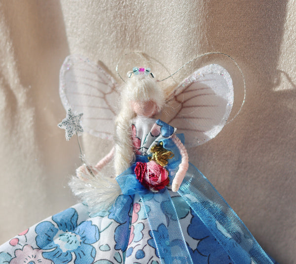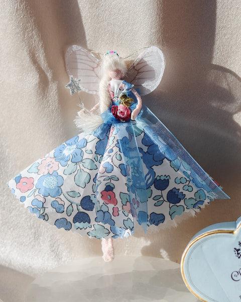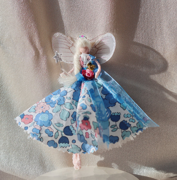 Introducing our enchanting Flower Fairy in Liberty Betsy Blue, a delicate heirloom handmade with love, colour and springtime charm.